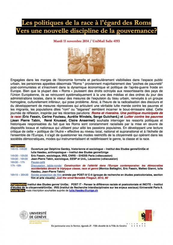 Ce 11 novembre à Genève, journée de formation avec Eric Fassin sur les Roms Publié par j.c le 11 Nov 2014 dans Annonces, Droits humains | 0 commentaire