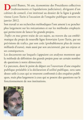 Dans son livre « Trafics en tous genres », Daniel Ibanez dénonce l’inutilité de la ligne à grande vitesse Lyon-Turin Publié par j.c le 21 Jan 2015 dans Environnement | 0 commentaire Cliquez ici pour plus de renseignements sur le livre