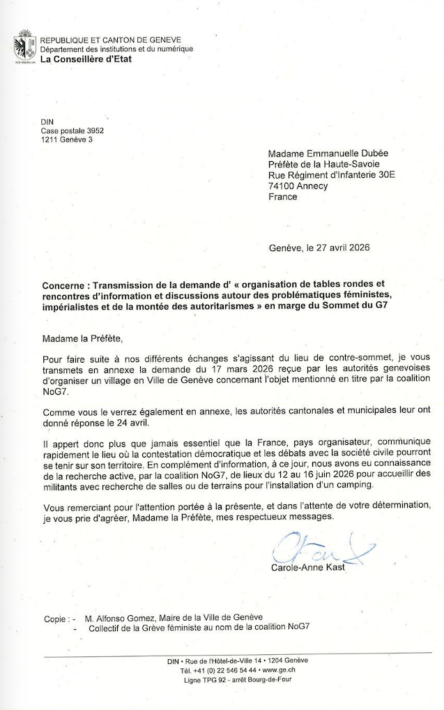 Le réponse de la Préfète a été claire « Un pays organisateur de grands évènements comme le G7 n’a pas vocation à mettre en place un contre sommet ».