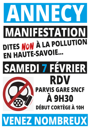 Dites non à la pollution de l’air en Haute-Savoie Samedi 7 Février à 9h30 devant la gare d’Annecy.