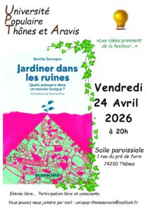 C’est que fait Bertille Darragon qui a fourni un travail journalistique de collecte d’informations qu’elle restitue dans son livre Jardiner dans les ruines, quel potager dans un monde toxique ? sorti en 2024 publié aux Éditions Écosociété. L’autrice était invitée à Thônes le 24 avril dernier par l’Université Populaire Thônes Aravis pour aborder les questions de pollution, des limites planétaires et du jardinage dans tout ça. Une conférence et un échange nourri avec la vingtaine de personnes présentes à cette soirée sorties secouées par l’ampleur des pollutions. Mais il est encore temps de freiner. En voici un résumé, accrochez-vous !