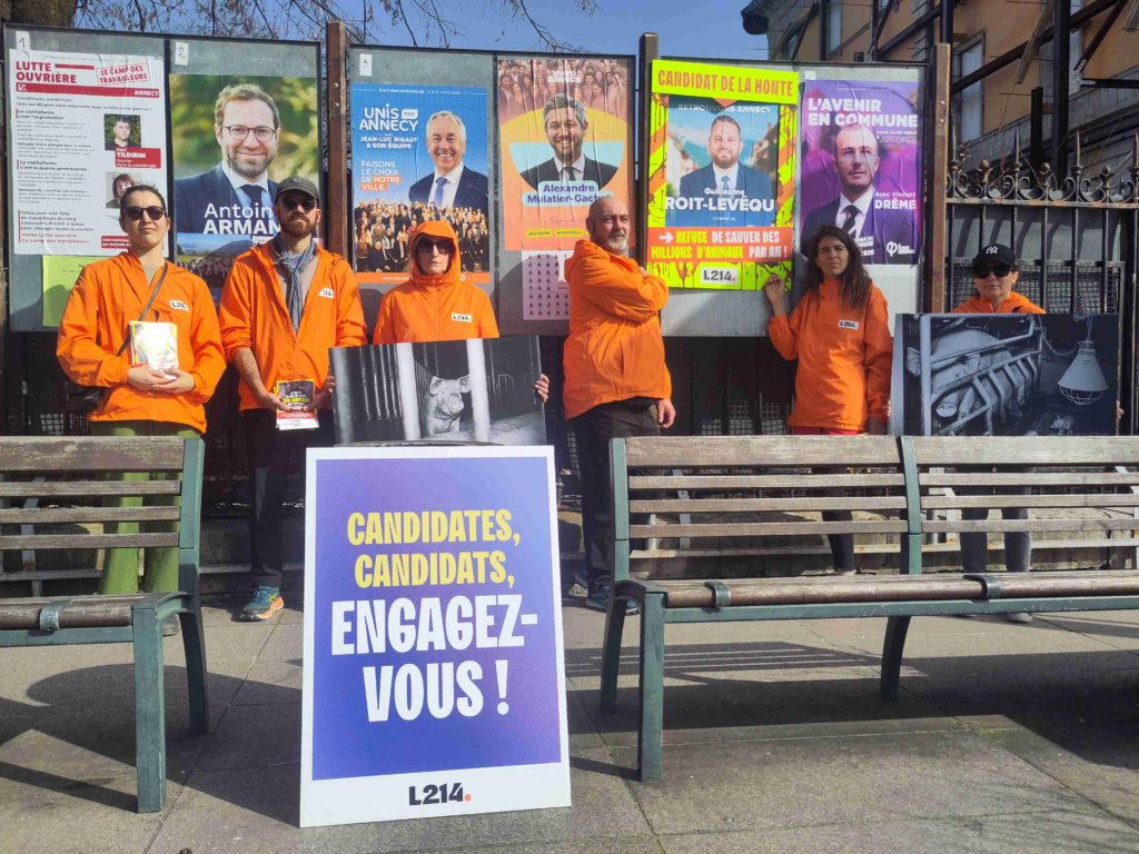 Ce samedi à Annecy, L214 organisait une action de communication pour indiquer aux citoyens les engagements pris par les différents candidats annéciens aux élections municipales sur la condition animale. L’objectif de l’association était surtout d’afficher clairement les candidats qui refusaient de s’engager en faveur des animaux, les qualifiant de « candidats de la honte ». Et c’est le représentant de l’extrême droite qui s’est avéré être le plus mauvais élève :