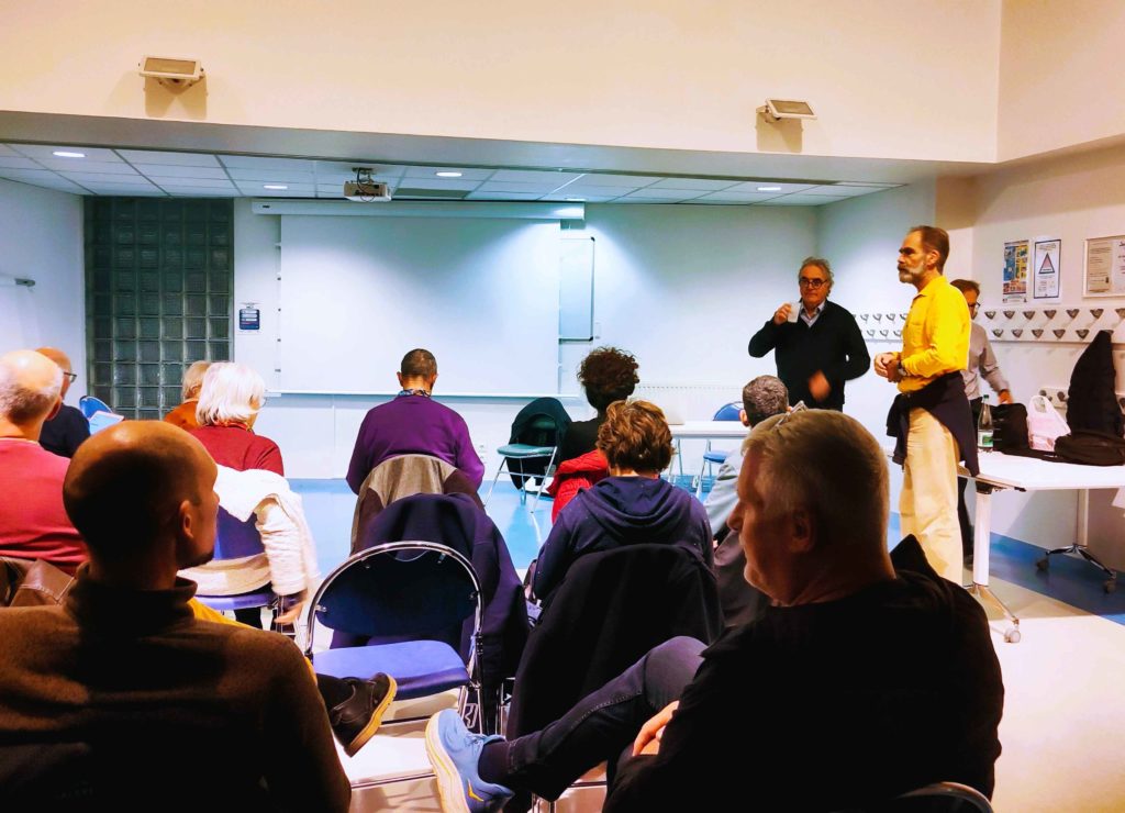 Alors que l’exploitation des carrières est censée s’arrêter en 2033 pour renaturer les sols du Salève, leur propriétaire semble vouloir la prolonger, puisqu’il resterait encore du matériau à extraire pour 90 ans d’après Henri Roth, historien, qui présentait à Annemasse le 5 novembre dernier l’histoire de la montagne, de ces carrières et de leurs enjeux. En effet, à l’appel de l’ASSAL[8], une assemblée citoyenne transfrontalière a lieu ce soir-là au centre Martin Luther King en présence d’élus, de représentants d’associations et d’habitants provenant des deux côtés de la frontière.