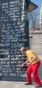 Marc en solo, comédien amoureux du théâtre de rue, a proposé au public de chanter sur les paroles inscrites sur un grand drap déroulé aux vues de tous.